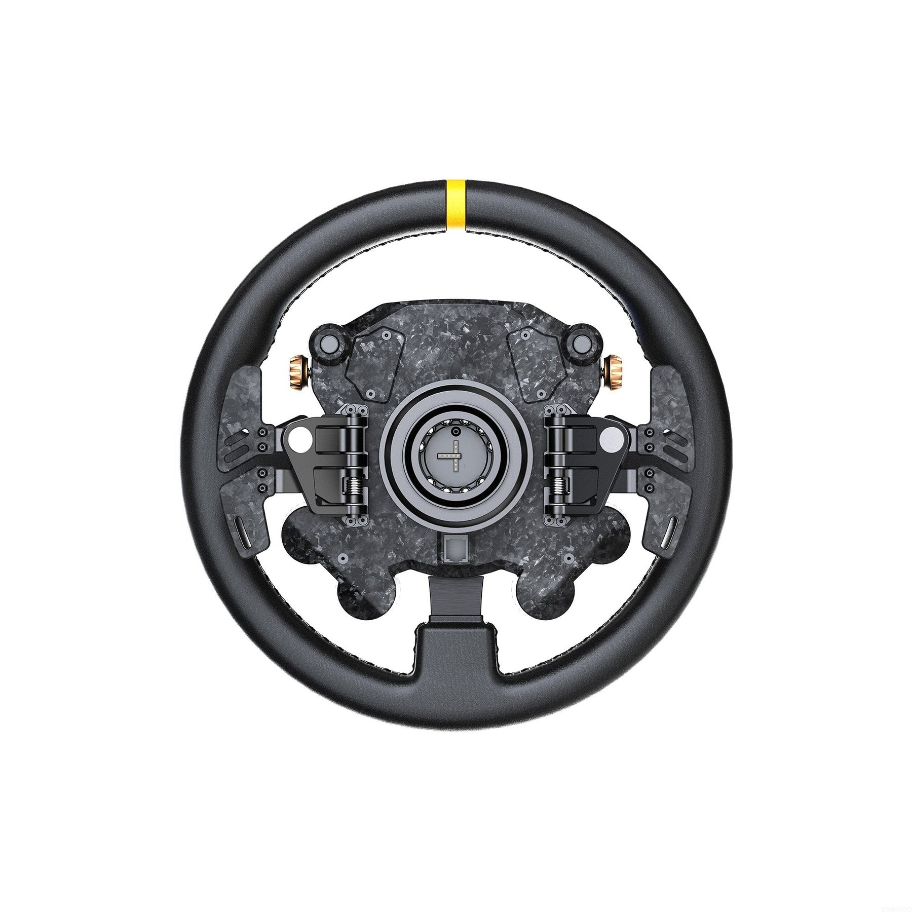 Rozbudowana kontrola danych wejściowych. Kierownica wyposażona jest w 8 przycisków RGB, 4 dwunastopozycyjne enkodery obrotowe, 2 siedmiopozycyjne przełączniki, 2 pokrętła i 2 przyciski tylne — wszystkie w pełni konfigurowalne — zapewniające różnorodne i precyzyjne opcje sterowania w każdej sytuacji wyścigowej.