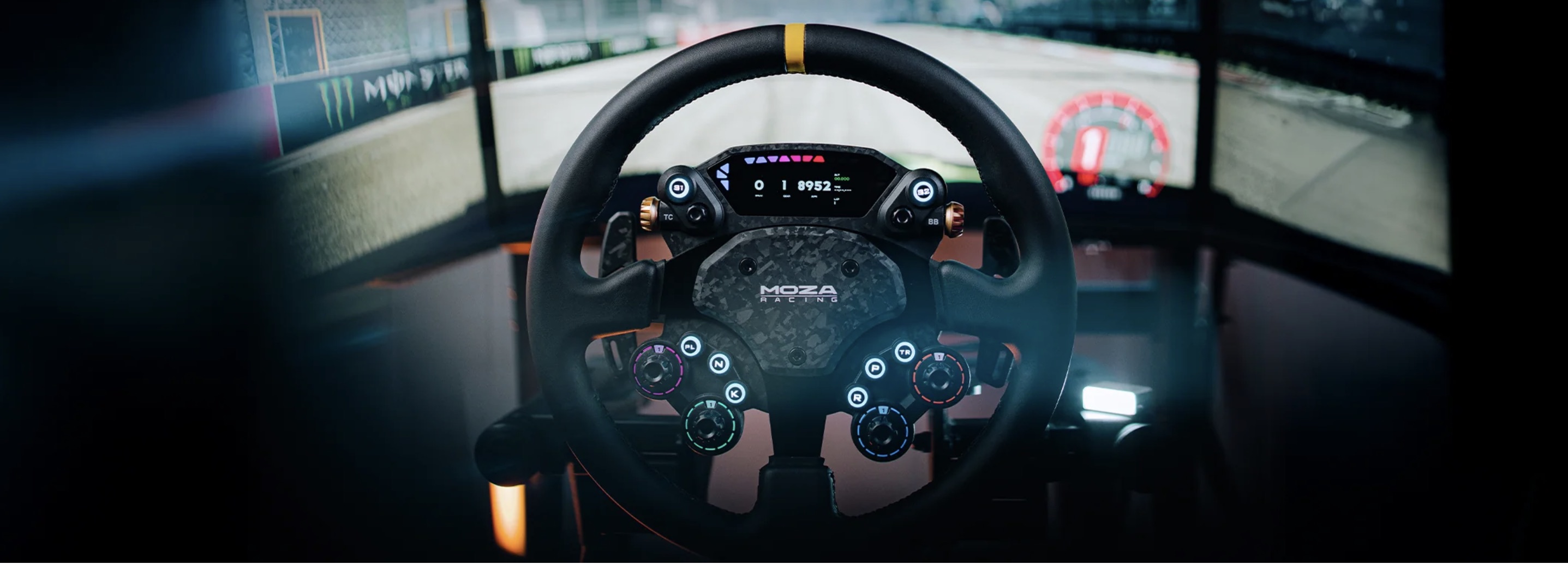 Odważny, nowy projekt. MOZA CS Pro ma konstrukcję piasty w stylu GT3 z przyjaznym dla środowiska uchwytem z mikrofibry. Bezszwowe szwy w miejscu oparcia kciuka zapewniają wygodny uchwyt. Układ oparty na złotym podziale tworzy dobrze wyważony, pełniejszy kształt kierownicy, a wszystkie przyciski i pokrętła są w zasięgu ręki.
